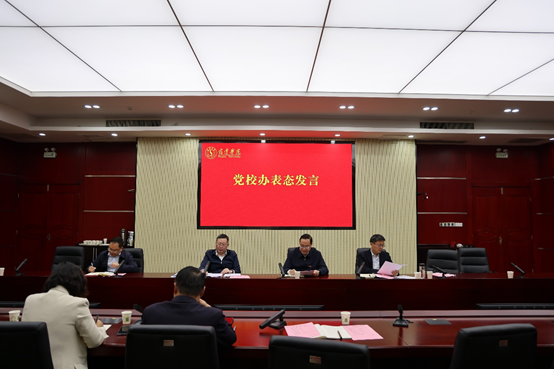 沈席强代表党支部就接受巡察作表态发言。他表示坚决做到三个“带头”:一是带头落实巡察组的部署要求,坚决做到主动接受巡察组监督检查;二是带头虚心听取巡察组和师生、同事提出的意见和建议;三是带头做到立行立改、真抓实改,全面整改巡察反馈的问题和不足,确保巡察党校办工作顺利开展。